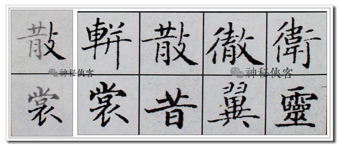 有些字,字下有零星的点,要将点粘附于其他笔画之下,以不即不离为佳,点离得太开,字就显得散漫,粘得太紧,字就显得拥挤。