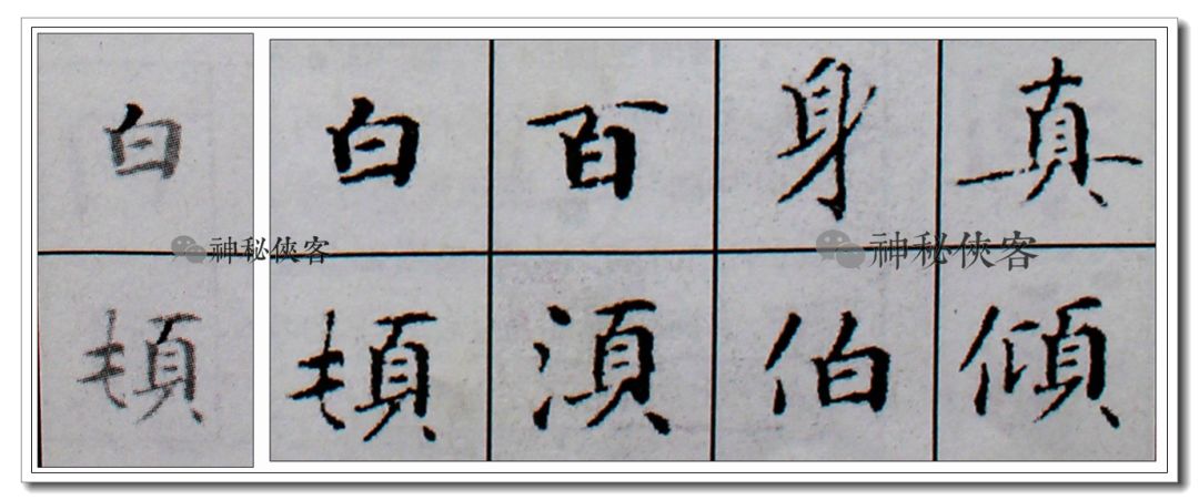 为了使方正呆板的字形,写得活泼生动,更好地加强笔画之间的联系,使之饶有情趣,把字形变得更合理、更紧凑,有时采用“破角”法。如“白”字中的一撇破了“日”的左上角,“顿”字的一撤破了“贝”的左上角。
