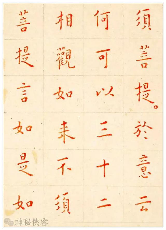 文征明写经大多是字字珠玑、篇篇玉璋的精心构思之作。文氏书《金刚经》,行与行之间,都有清晰的乌丝栏,抄经在乌丝栏之内,整体上干净利落,十分可爱,这都是唐写经书法齐整划一的重要表现。但细观每一个字,都在四方块中极富变化,在字形中间部位的横划,多破锋直入,类同尖刀,收笔时稍事停顿,即作回锋,给人以迅疾、畅快之感。当然,这样单刀直入的笔法也是抄经速度上的要求所致。