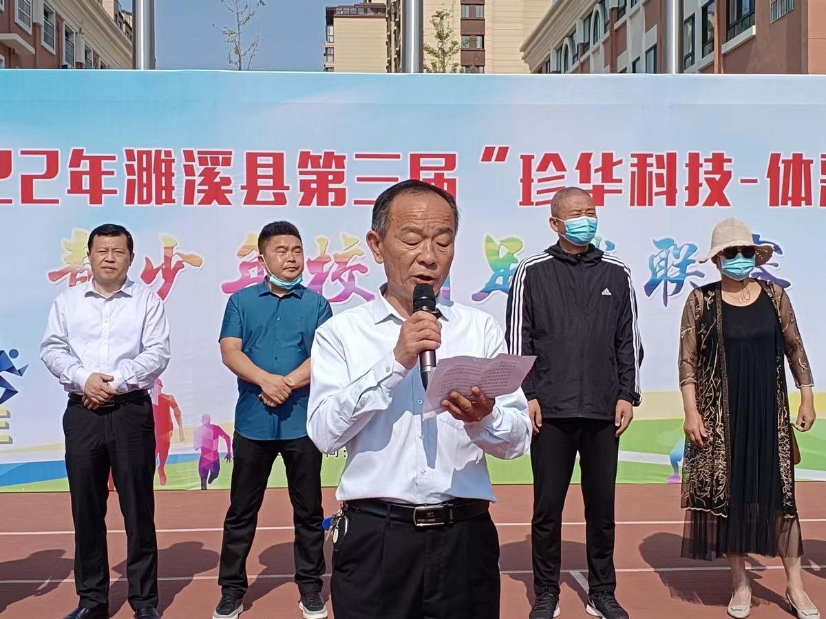 濉溪县文旅体副局长丁卫东宣布濉溪县2022年“珍华科技-体彩杯”青少年校园足球联赛开幕。