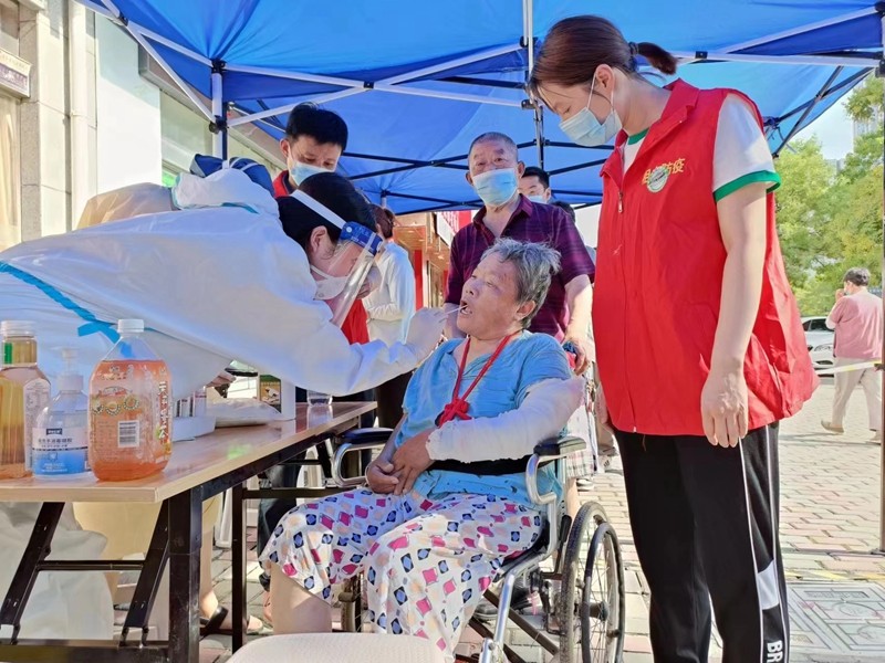 (图为县审计局组织志愿者参与疫情防控活动。)