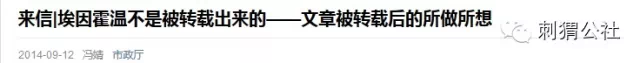 根据公开信的作者段兴凯(@营国匠人)的原微博显示,这篇文章早在12月19日就已经以长微博的形式发布;而就在3天前的12月16日,另一篇同样来自于被侵权作者冯婧的呼吁停止抄袭的文章《来信:埃因霍温不是被转载出来的》则发布在澎湃新闻的官网上,还在其所属专栏——【澎湃研究所-市政厅】的官方微博上被置顶。但刺猬君在搜索的过程中发现,文章《来信:埃因霍温不是被转载出来的》早在9月12日就已经发布在市政厅的微信公号了。