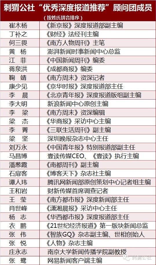 “优秀深度报道推荐”栏目主要推荐过去一周各媒体的优秀深度报道,供各位参考、研读,回复“报道0228”查看报道原文。该栏目的所有文章均由刺猬公社“优秀深度报道推荐”顾问团推荐,顾问团成员名单附后。欢迎深具行业影响的专业人士加入顾问团,微信号:yunlugong 。(按推荐顺序排序)