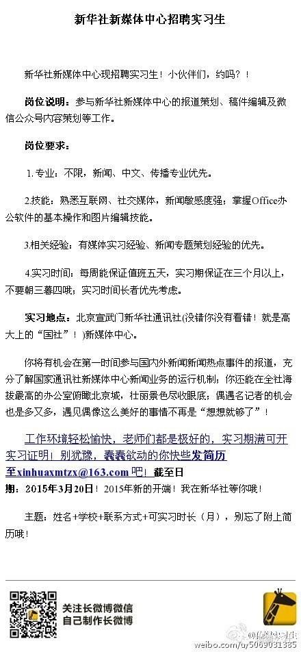 号外:只要你有意做一名记者、编辑、摄像、编导、主持人、翻译、H5高手、设计达人、营销圣手、公众号幕后酷酷的运营者,一名提供优质资讯给千千万万人看的传媒人,就加入第一财经资讯实习生计划吧!