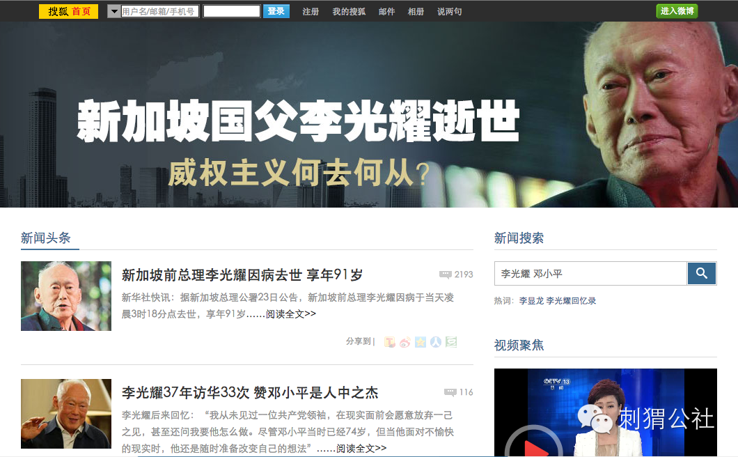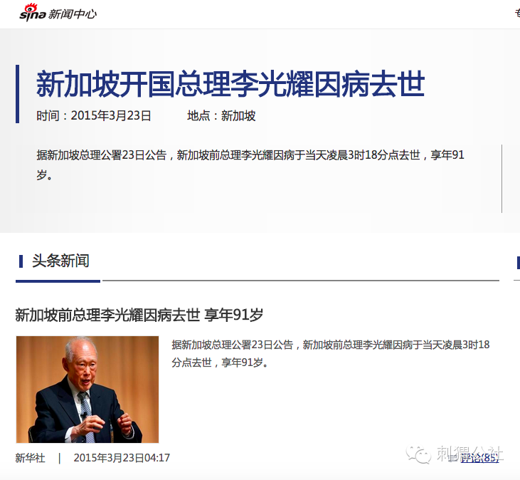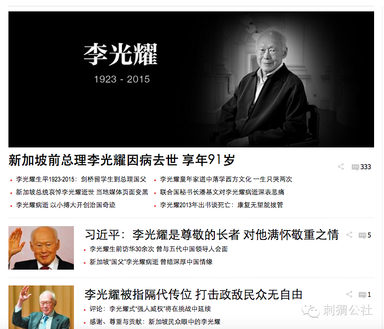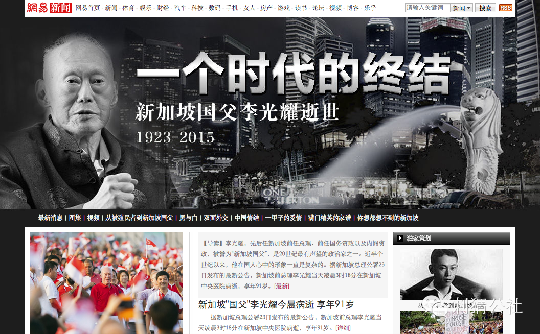 腾讯在第一轮“抢新闻”大战中没有“受伤”,这次推出的专题也相对简略,甚至在一个专题页面中,只有一半是关于李光耀的: