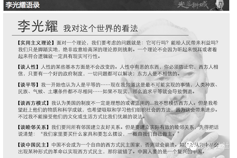 凤凰网对于李光耀语录的梳理也显得分外用心。