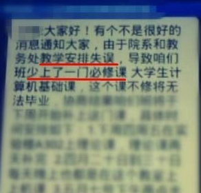 最近,河南财经政法大学60多名大四学生无法毕业。因为大一的计算机课,校方居然忘开了。学校安排学生和今天用两天时间补完一学期的课,很多学生在外实习来不了。校方对此回应称系教学管理人员工作失误所致,将及时安排学生用两天时间补完一学期的课,不影响正常毕业。学校将对相关人员进行追责。