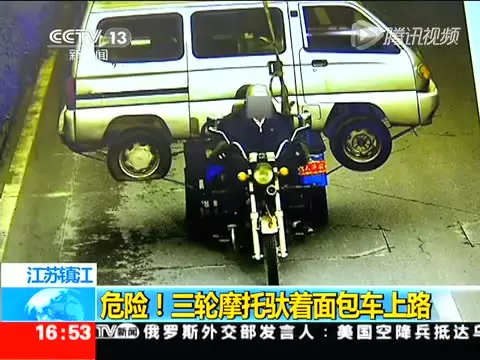 @现代快报 《江苏一男子骑三轮车驮面包车上路 惊呆交警》