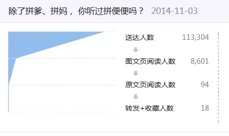上面分析总结了一篇好的营销微信,在标题制作、内容服务、呈现形式以及时效等方面的特点。从钱报官微2014年10-12月的数据分析中不难看出,来自外部营销公司或互联网广告公司的微信,其文案质量、呈现方式、标题、时效、贴近度等,均有值得借鉴之处。而很多内部与版面打包销售的营销微信,或者活动通告等,或多或少存在一些值得改进的地方,例如:标题和内容广告意味明显,却不允许二次编辑;文字长篇大论,缺图缺视频,不考虑移动用户的习惯;内容重复,多次发布,个别甚至发布8-10次;文字枯燥,不符合互联网文风;不考虑细分用户,发了就好,等等。例如,在首届互联网大会期间,钱报官微配合某通讯公司发布了4条营销微信,其中最低的一条标题为阅读量仅为643人次。