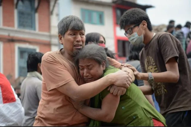 两个尼泊尔人在杜巴广场上拥抱 (PrakashMathema)
