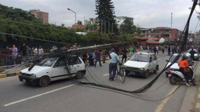 加德满都,电线杆倒塌 (图片来源于网络)