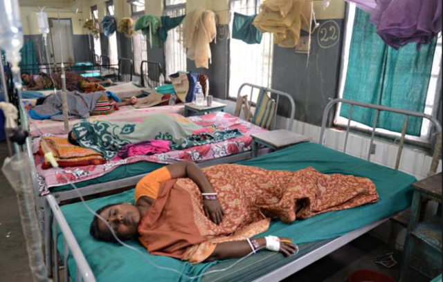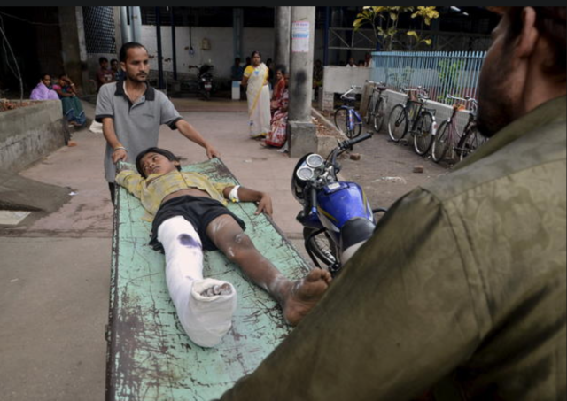 印度东北部有强烈震感,一位印度女人在接受治疗 (摄像:Diptendu Dutta)