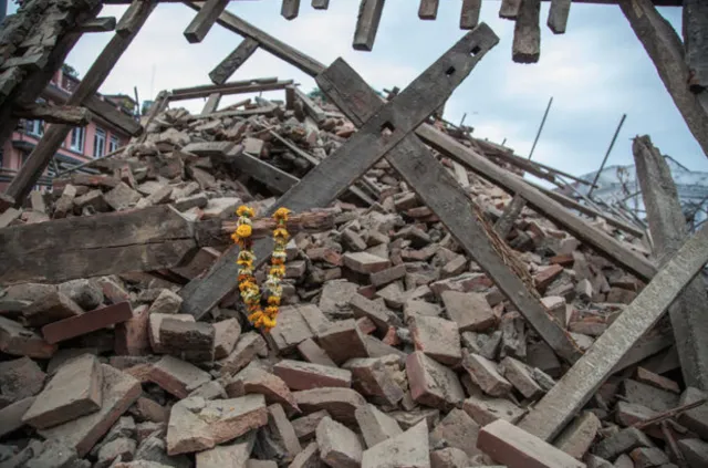 尼泊尔的比姆森塔建于1832年,高约60米,是为了纪念尼泊尔近代史上著名的抗英民族英雄比姆森.塔帕首相而建,是当地一处历史性地标建筑,在该塔八层的位置有一圈观光阳台,通常在周六迎来客流高峰,如今却是一片废墟。