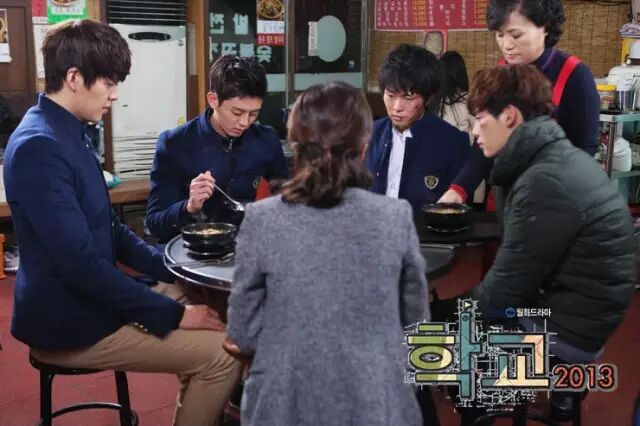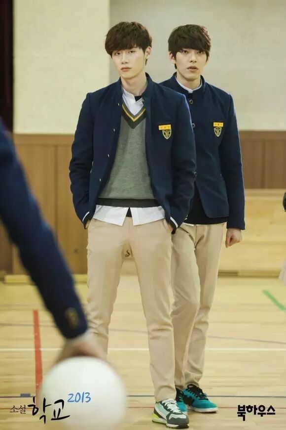 然而最丧心病狂的长腿秀,当属《学校2013》,李钟硕、金宇彬两大男主角都是模特出身,平均身高足足有187CM,连男老师崔丹尼尔也有186CM的身高。