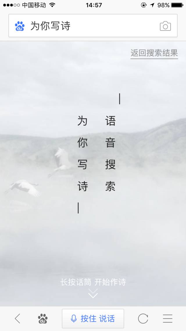 百度此次推出的“为你写诗”,一大特色是语音识别 自动搜索。这也是百度在人工智能领域深耕多年后为数不多的实质性成果之一。