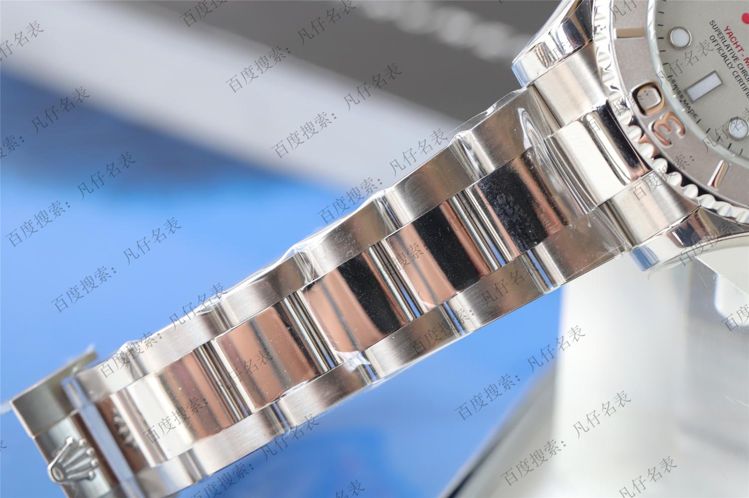 三个盘面颜色,具体参数都是基本一致的,所以拿这款银盘代表,主要参数是40MM表径,904不锈钢材质的表壳表带,950铂金外圈,机芯搭载劳力士自产的专利3135自动机械机芯。