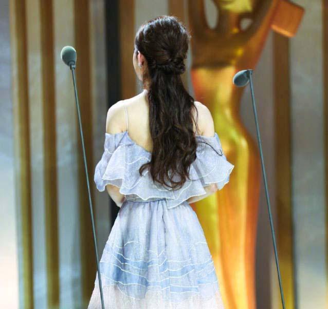 赵丽颖每一次上台领奖都有一个华丽的转身,精致修身的礼服将她嫩白,细滑的后背衬托的完美无瑕,一次又一次的背影杀都让很多网友路转粉。