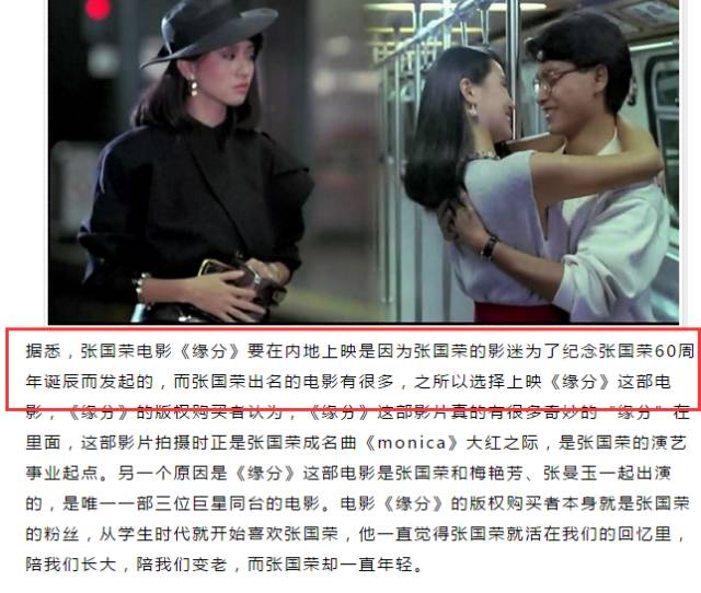最后,毒药君认为,《缘分》虽然较《霸王别姬》之类的影片确实不太经典和出名,但是就像老荣迷前辈们说的那样: