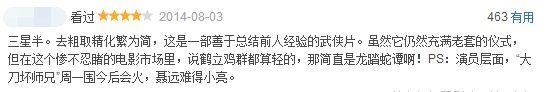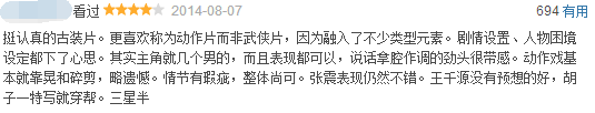 豆瓣评分尚可,7.4。对于一部最大程度去特效的古装动作片而言,能拿到这个评价,已属不易。