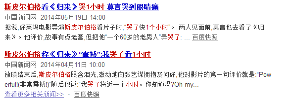 举个栗子,张艺谋《归来》公映时,媒体曾拿“斯皮尔伯格哭了1小时”当宣传文案。