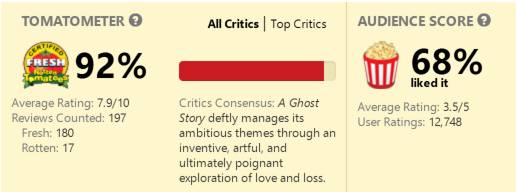 《鬼魅浮生》烂番茄新鲜度高达92%,观众好评率只有68%。