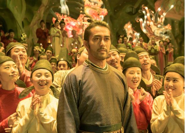 日本演员阿部宽饰演的阿部仲麻吕,作为日本遣唐使里官位做到最高的人,他内心隐藏着的是对贵妃的痴迷。为此他甚至不惜与天子对峙,同时他也是“妖猫谜案”最重要的记录者和破题人。阿部至死都没有再回日本,他把一生献给了大唐,也把一腔的热爱和痴情献给了大唐。