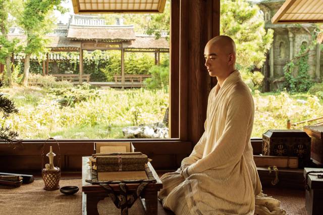 日本演员染谷将太扮演的沙门空海,执着于要找到死生的真义,完成对大唐佛教密法的领悟。为此,他本可以置身“妖猫谜案”之外,却着了魔一般越陷越深。为了能体会杨贵妃死前的感受,他躺在贵妃的灵柩里,像个偏执的神探。