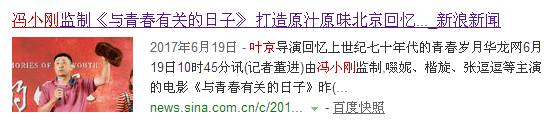 今年夏天,电影版《与青春有关的日子》正式发布消息,冯小刚将监制并特别出演这部由叶京执导的电影。