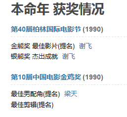 1990年,谢飞凭借《本命年》拿到柏林电影节银熊奖杰出成就奖。