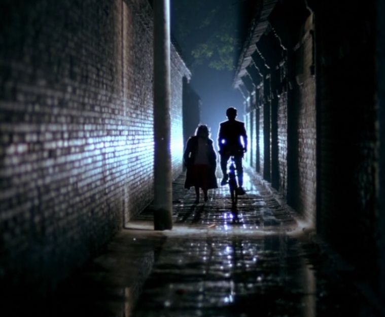 关于泉子孤独的命运,影片开头就贡献了一个著名的长镜头,泉子从黑暗走向光明,火车道边车声隆隆,广播里中央广播电台的播音始终环绕,泉子在老胡同里拐弯抹角地行走,就像在时代的洪流中踽踽摸索回家的路。