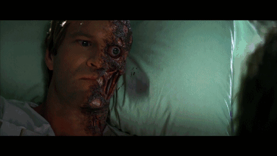 曾经象征哥谭市正义一面的丹特,在瑞秋死后心怀怨念。复仇的欲望粉碎了他对正义的理想,那个曾经代表光明的人,在小丑的混沌理论诱惑下,化身为了复仇使者。