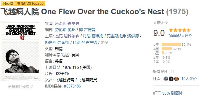 高口碑不是盖的,《飞越疯人院》同样成为第48届奥斯卡最大赢家,狂揽最佳影片、最佳导演、影帝、影后、最佳改编剧本五项含金量最重的大奖。