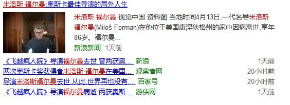 我说的是米洛斯·福尔曼,在美国时间13日在家里过世,享年86岁。