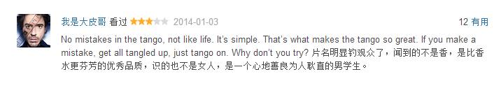 尽管有影迷《闻香识女人》这个片名不买账,纷纷表示是明显的标题党,跟剧情没有太大的关系。