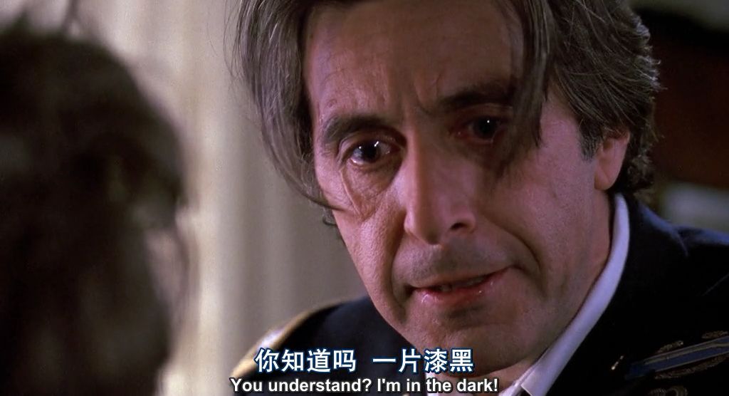 脾气古怪的盲人上校弗兰克在阿尔•帕西诺的演绎下魅力逼人,影片因他的精彩表演而成为经典,他也凭借本片获得第65届奥斯卡金像奖最佳男演员奖和第50届金球奖剧情类最佳男主角。