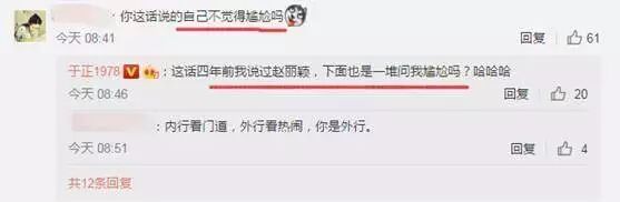 不久前,于正发微博力赞旗下艺人赵凯是“天生的戏骨”,结果被网友怼:“你这话说得自己不尴尬吗?”于正回复:“这话四年前我说过赵丽颖,下面也是一堆问我尴尬吗。”暗示自己挖掘新人的能力。