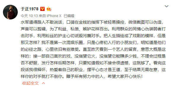 相关留言似是激怒了于正,第二日一早他便连发了四条微博炮轰谣言。