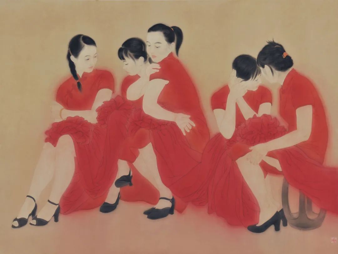我常常在课堂上对同学们说,画人物首先要解决造型问题,造型问题解决的好,画家就自由得多,陈朵朵的创作实践,似乎也应证了这样的道理,是因为她有扎实的造型基础,所谓无论工笔,意笔她都能拿得起来,当然作为一个年轻的画家,她还有许多新的问题要解决,但我相信,她倘使一如既往的努力,她一定可以画得更好,走得更远。