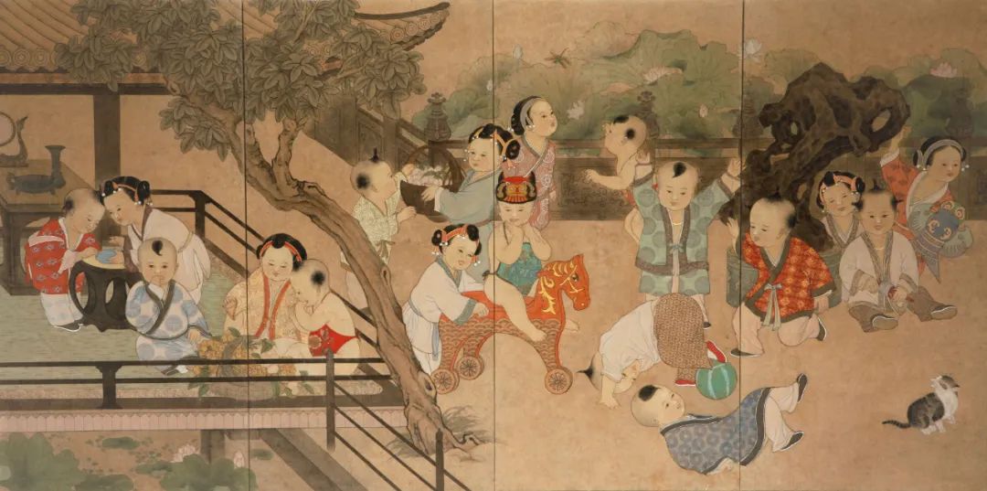 陈朵朵希望自己的画作能具有一种精神的力量去打动观者,因此她需要不停地去贴近自己想要表达的对象,倾听内心最深处想要诉说的声音。陈朵朵便将其寄予在婴戏画中。