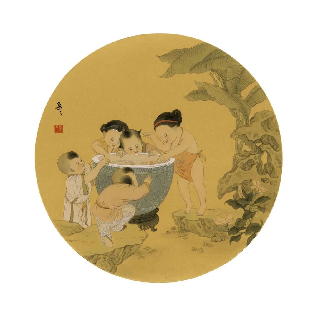 画如其人,陈朵朵个性婉约、沉稳,她笔下的婴戏图笔法极其精湛细腻,人物神情动态刻画得精妙入微。“我想做的事情,就是为婴戏画在历史的演进中推进一小步,哪怕只是一小步。”陈朵朵说。