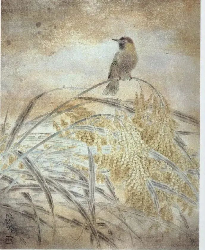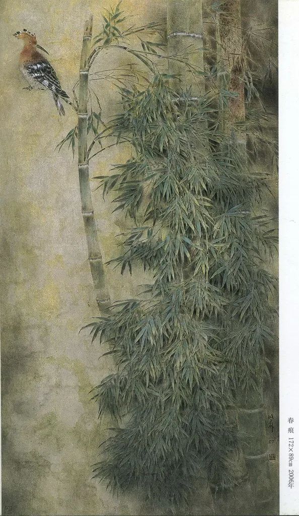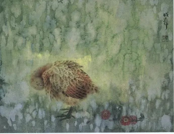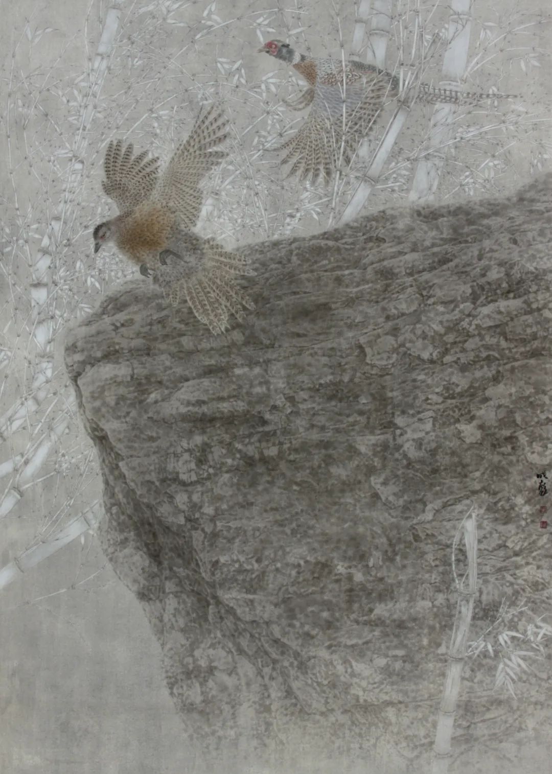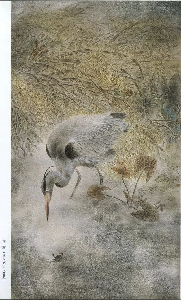 从其在南京艺术学院的学习经历,可以看出他的工笔更多地向人文意蕴与现代绘画因素的风格转变。精雅幽然的风格,对宋画中的古典审美与高尚情趣的体察以及将对三维时间的感悟融入花草禽鸟的形态与色泽之间的艺术表现,成为颜成彪工笔画中的特质。