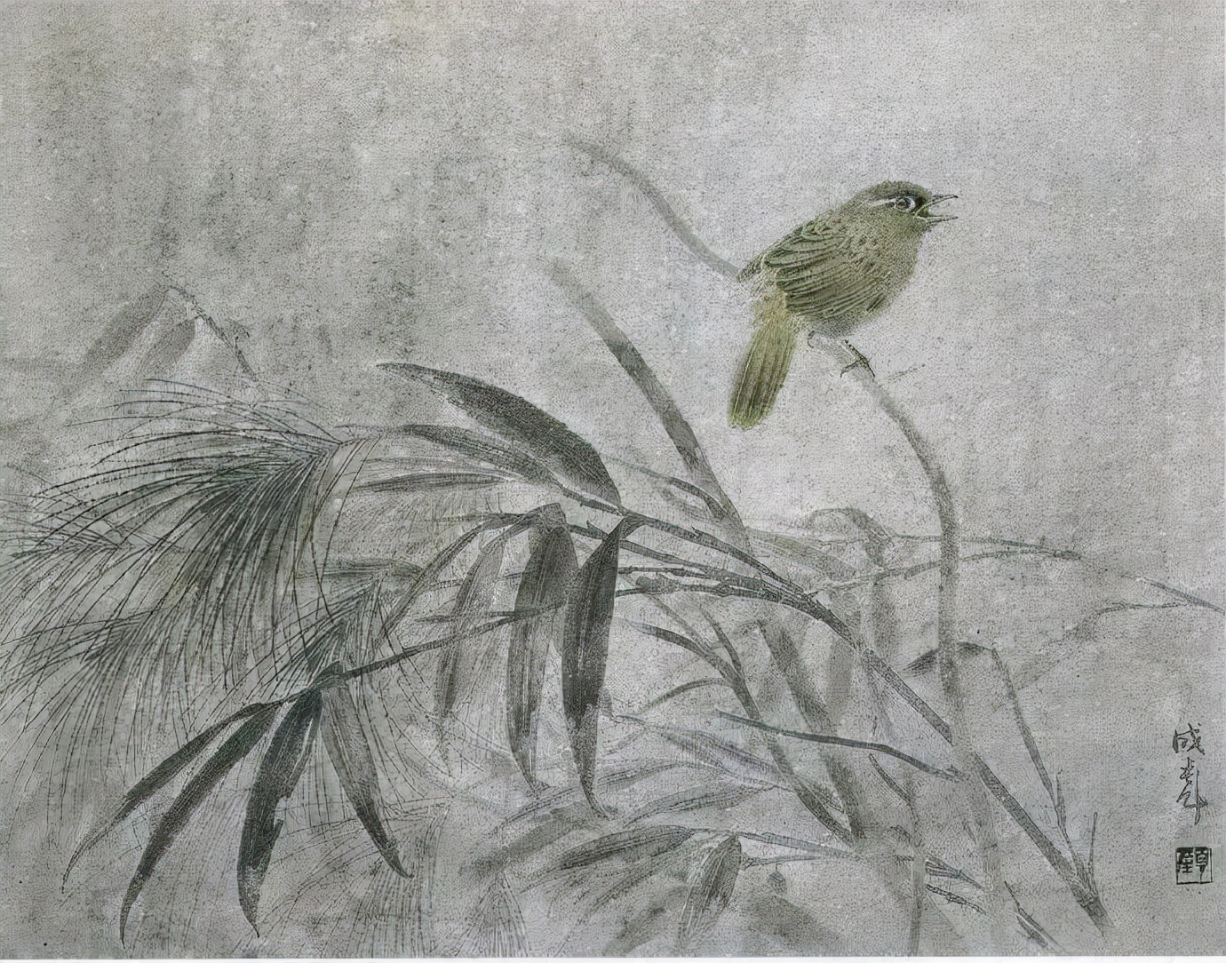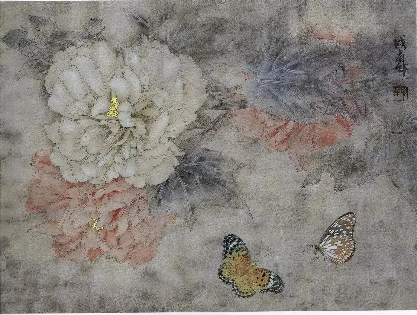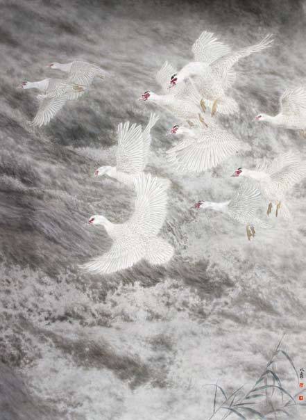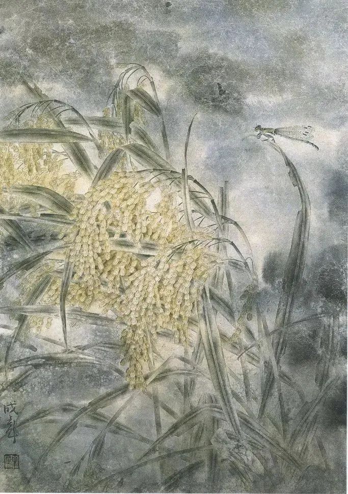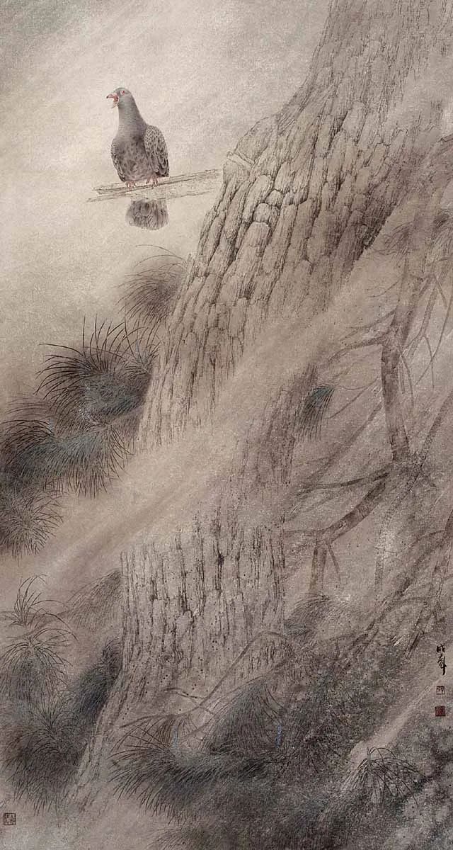 从其在南京艺术学院的学习经历,可以看出他的工笔更多地向人文意蕴与现代绘画因素的风格转变。精雅幽然的风格,对宋画中的古典审美与高尚情趣的体察以及将对三维时间的感悟融入花草禽鸟的形态与色泽之间的艺术表现,成为颜成彪工笔画中的特质。