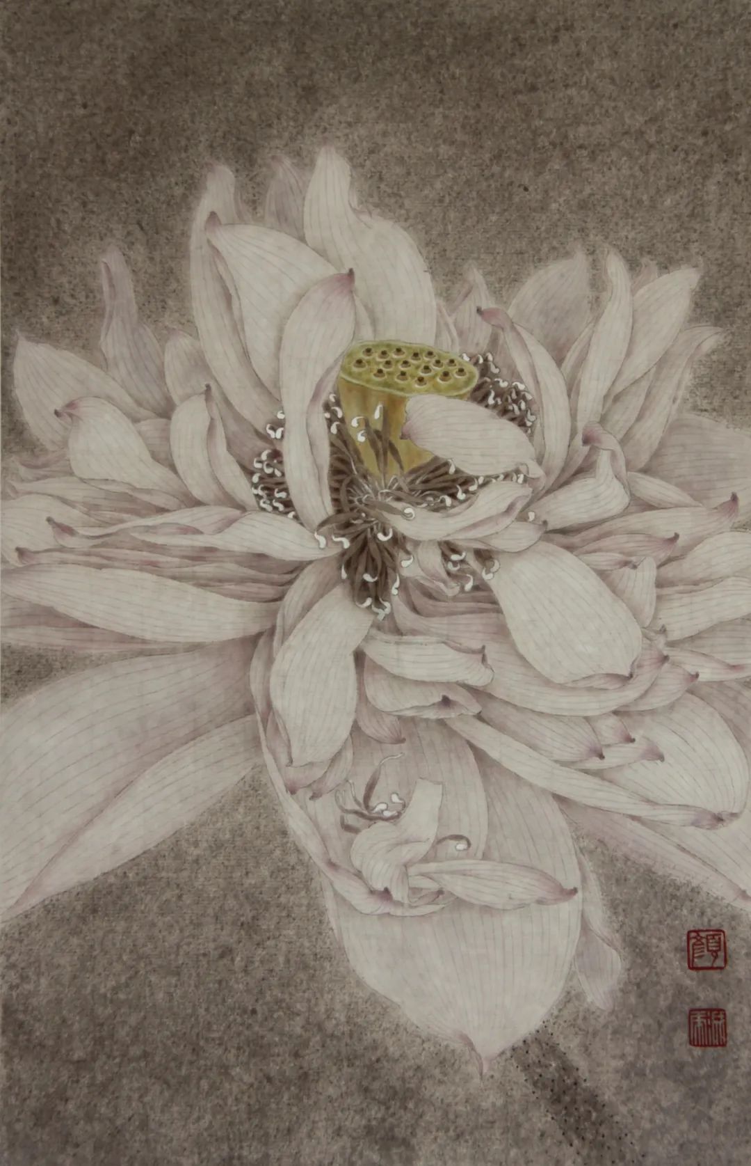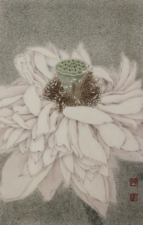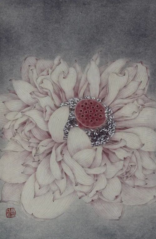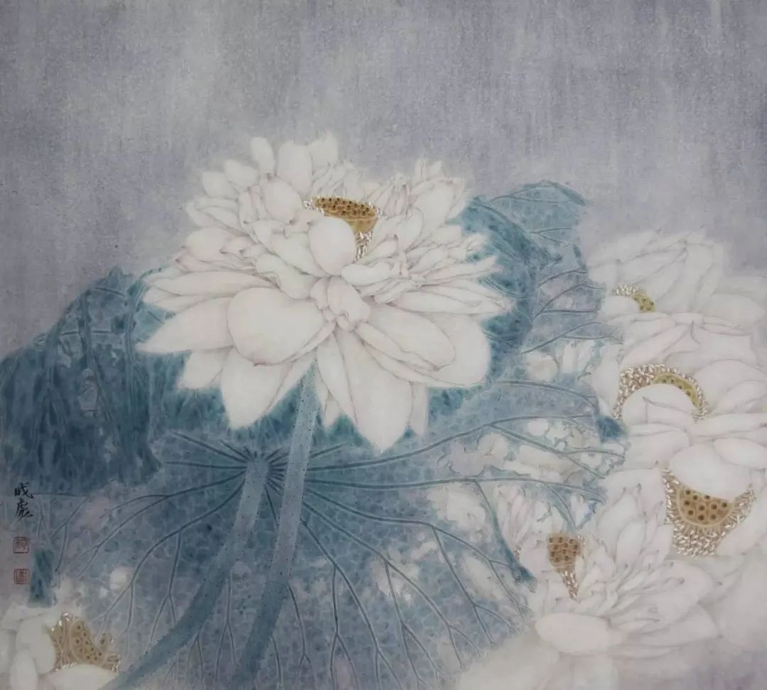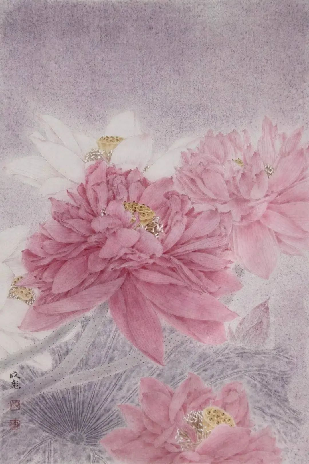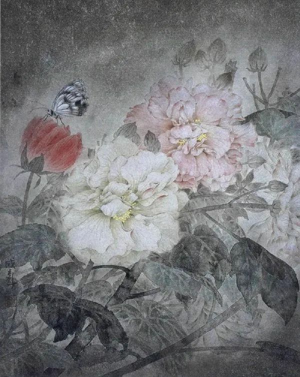 在传统工笔画追求骨法用笔、随类赋彩的基础上,既吸收宋画中简洁、含蓄、谦卑、轻柔的文艺态度,借鉴了西方的写生与古典油画之法,在工笔中追求抒发心境的韵味意趣,于院体工笔和文人意趣间的穿梭往来,使画面的表现更加深刻完美。
