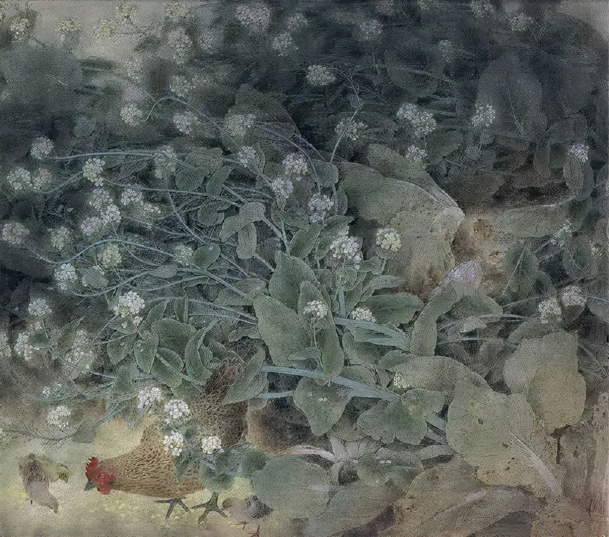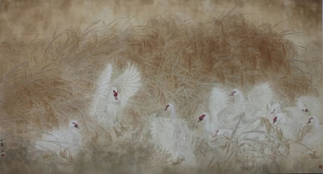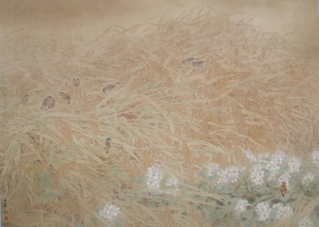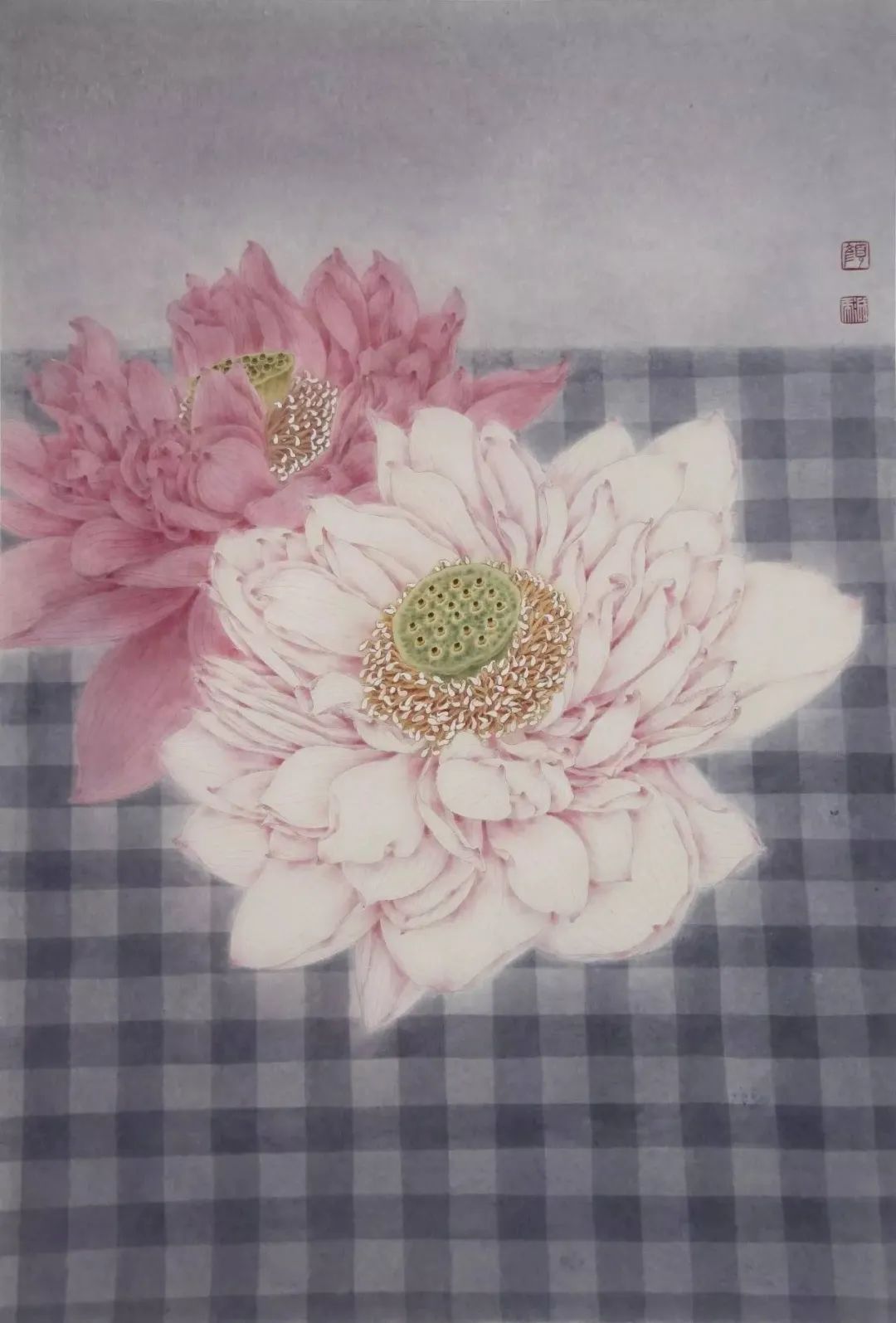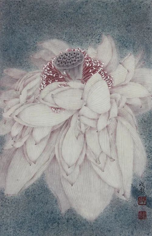 在传统工笔画追求骨法用笔、随类赋彩的基础上,既吸收宋画中简洁、含蓄、谦卑、轻柔的文艺态度,借鉴了西方的写生与古典油画之法,在工笔中追求抒发心境的韵味意趣,于院体工笔和文人意趣间的穿梭往来,使画面的表现更加深刻完美。