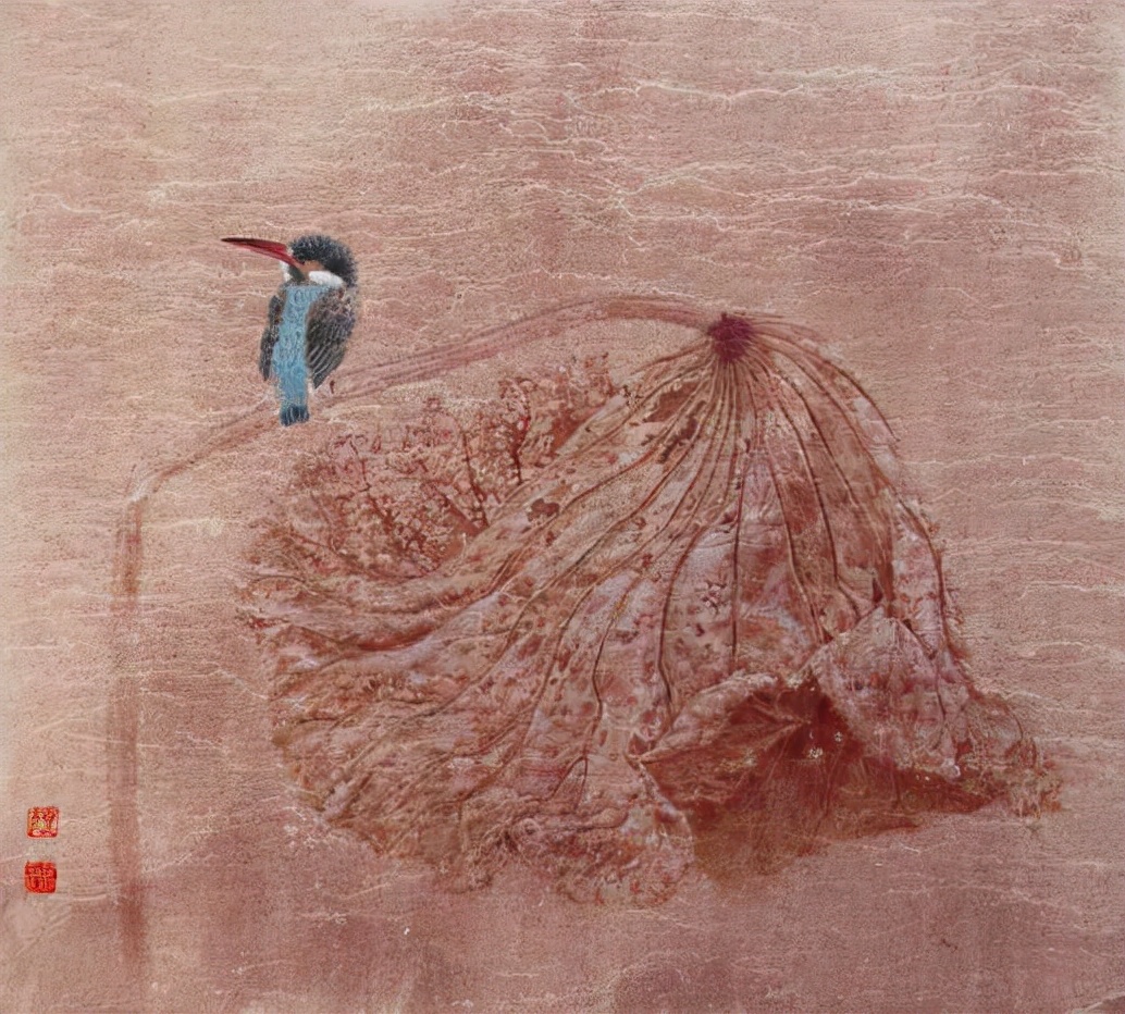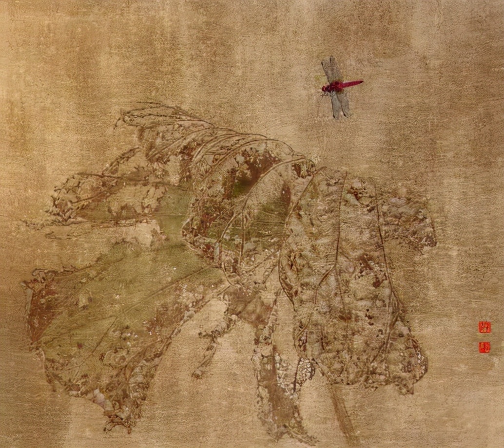 一花,一鸟,一枯叶,一蜻蜓,独荷孤叶,形单影只,凋零的花瓣,残破的叶脉,颜成彪从自身对自然的体察与感悟出发,在传统的花鸟题材中摸索着季节的交替与时间的流逝,思考万物的去来与生命的倏忽。