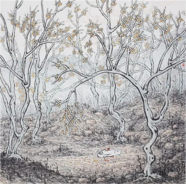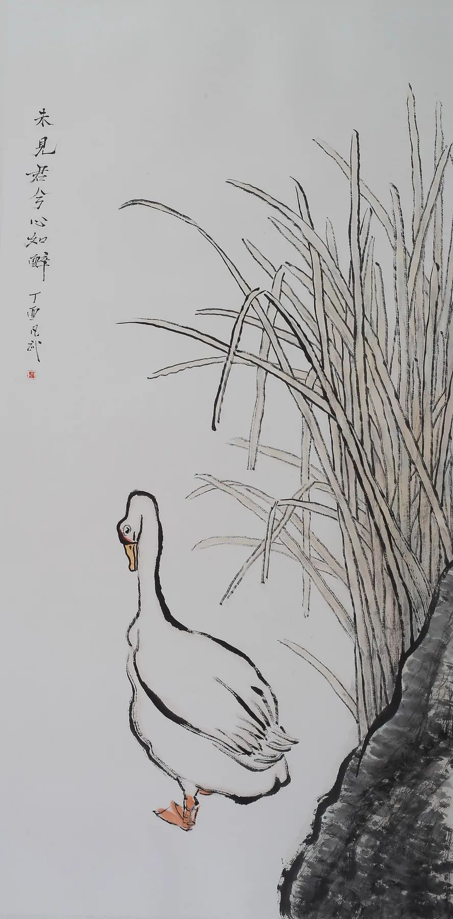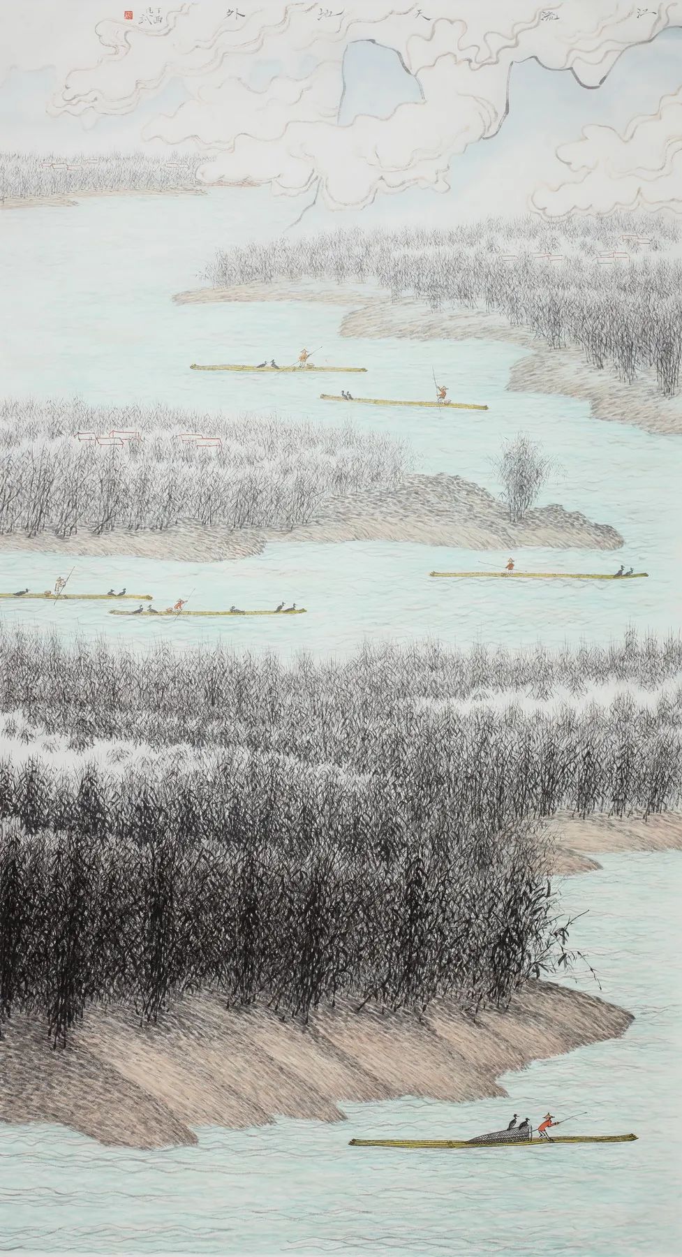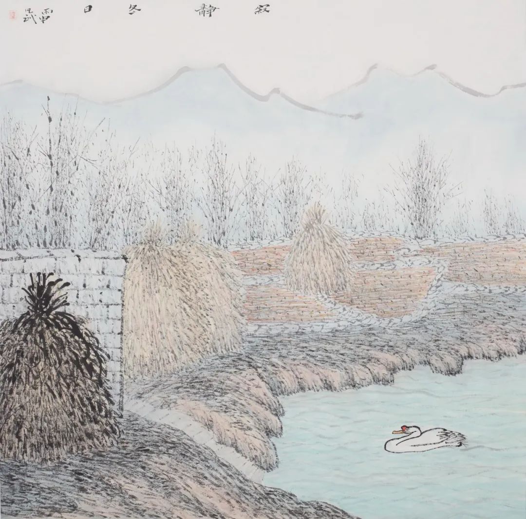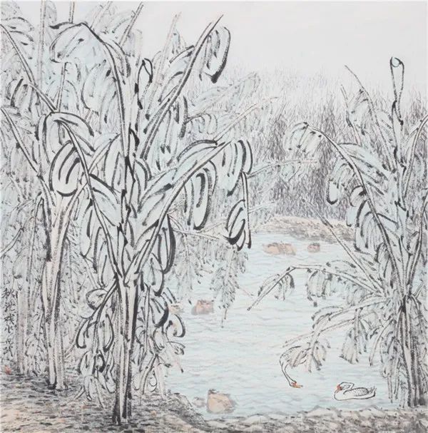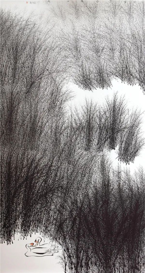 当然,那些原本就从传统文化中汲取营养的人,更会在看到蓝凡武的画时,有所触动,想起幼年的家乡,山清水秀,绿树成荫,河边的苇子丛中,忽然掠过红嘴的翠鸟,或许,这种触动会逐渐地汇集成河流,乃至汪洋恣肆的大海。文化的传承和发展不就是靠着这一点点的触动而来的吗?所以,真实会使蓝凡武的绘画语言变得非常有力!