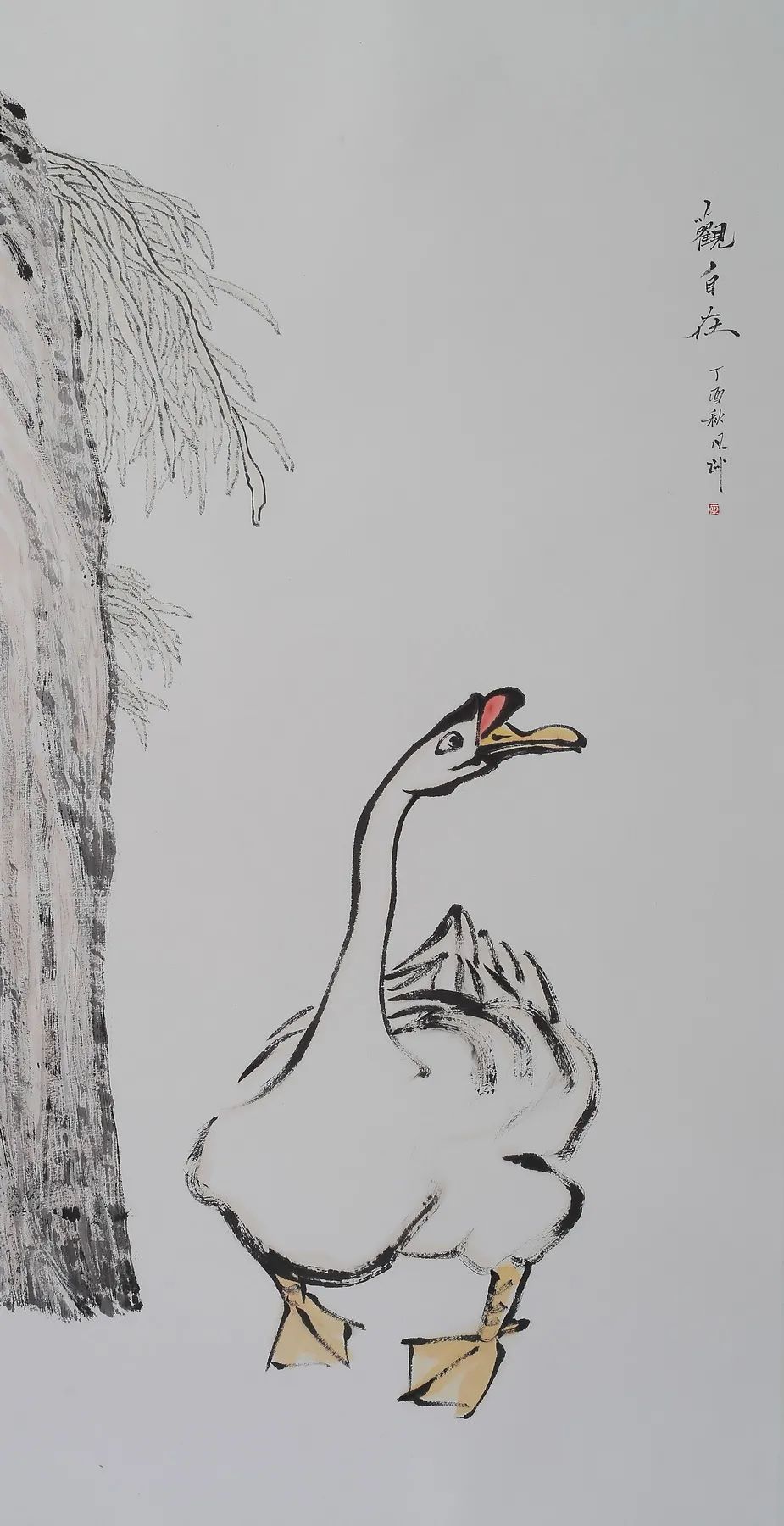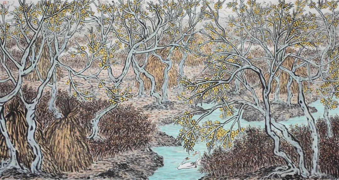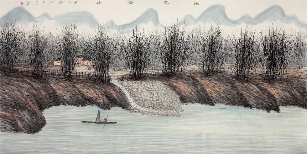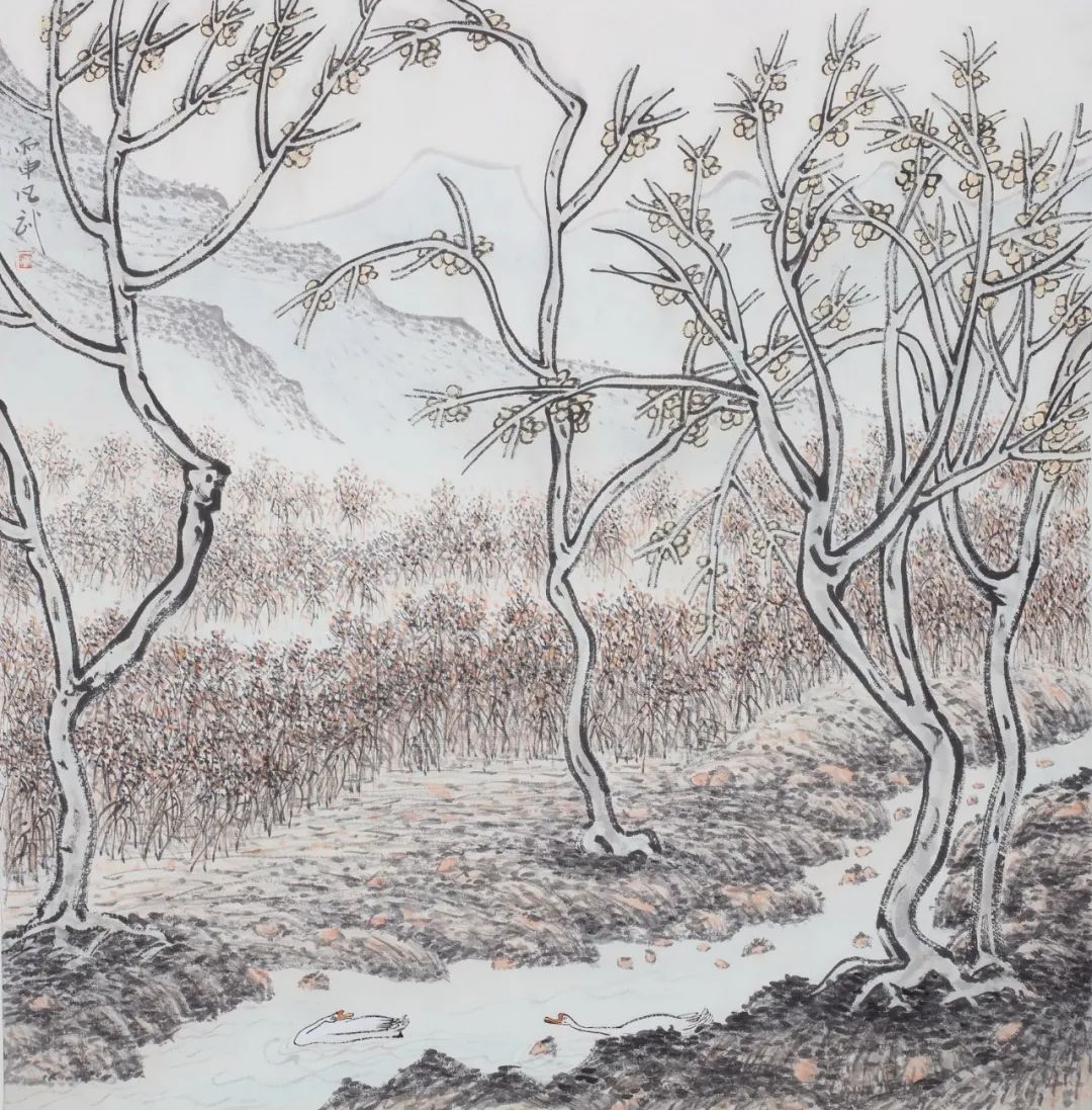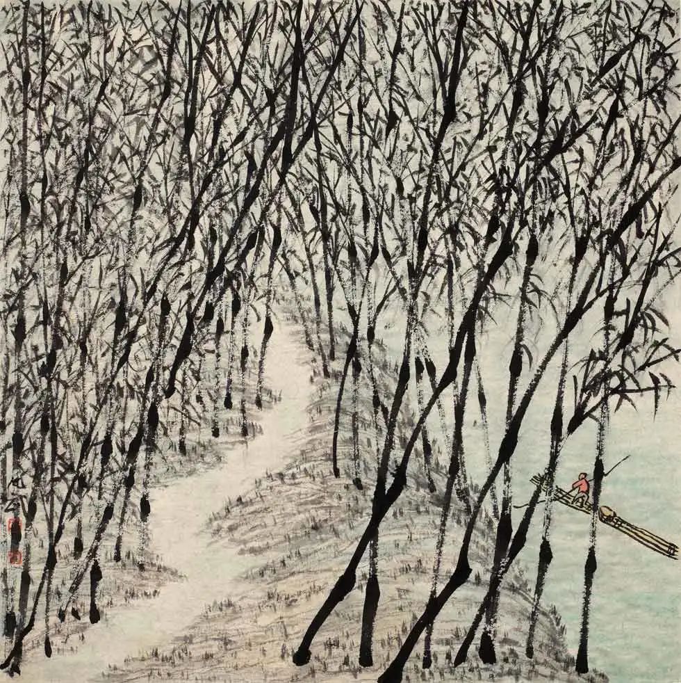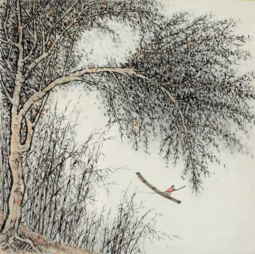 当然,那些原本就从传统文化中汲取营养的人,更会在看到蓝凡武的画时,有所触动,想起幼年的家乡,山清水秀,绿树成荫,河边的苇子丛中,忽然掠过红嘴的翠鸟,或许,这种触动会逐渐地汇集成河流,乃至汪洋恣肆的大海。文化的传承和发展不就是靠着这一点点的触动而来的吗?所以,真实会使蓝凡武的绘画语言变得非常有力!