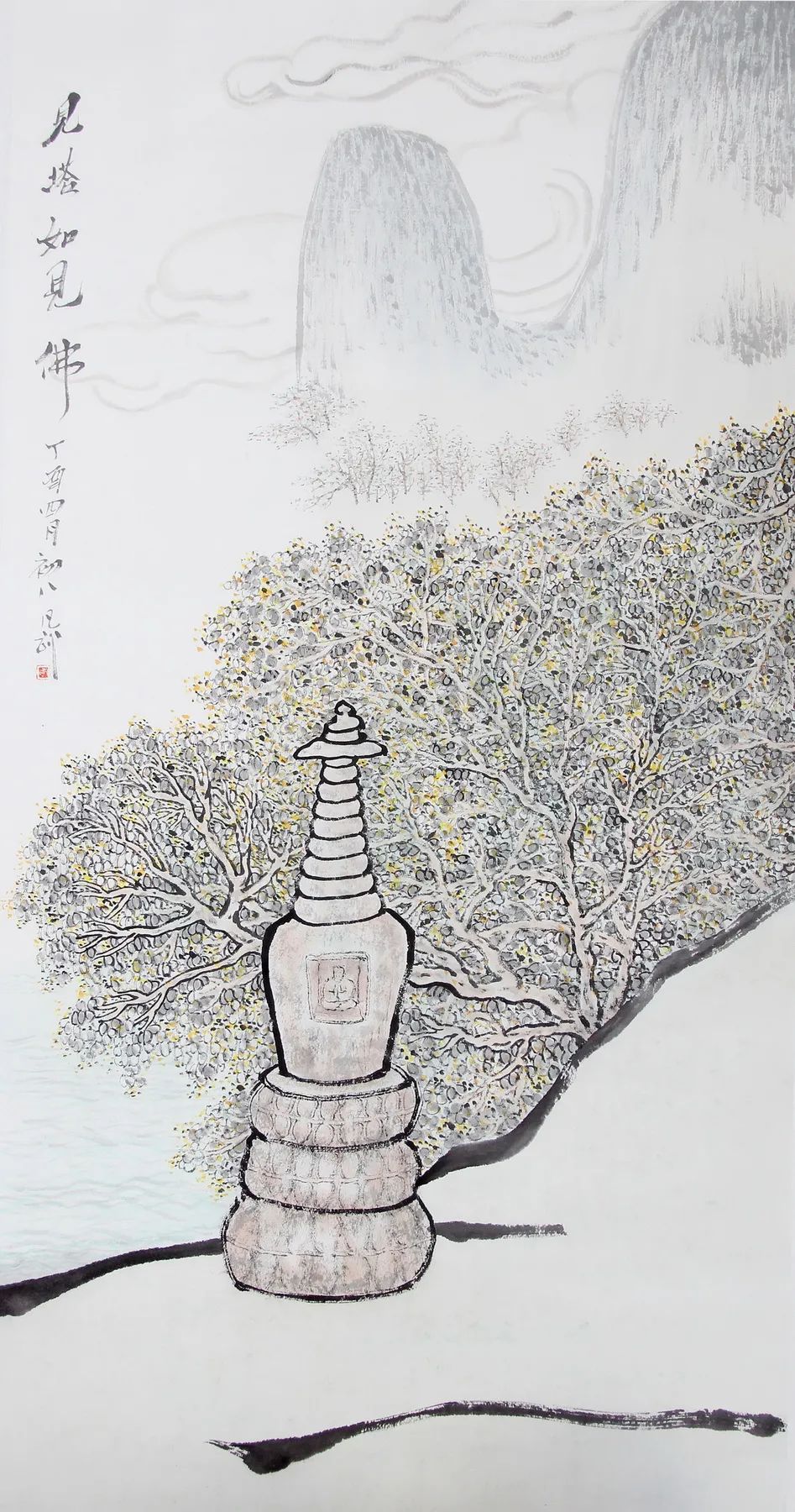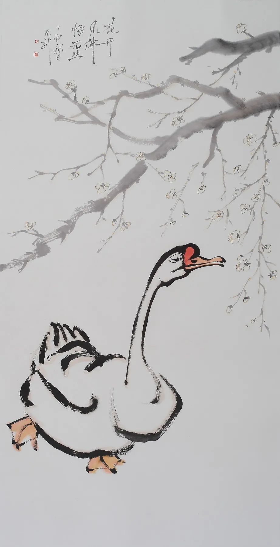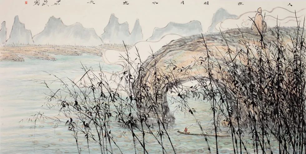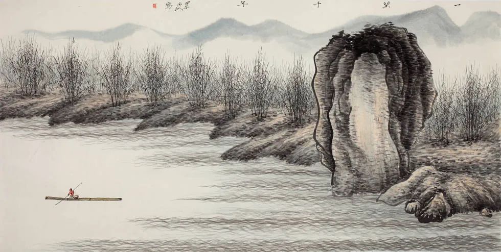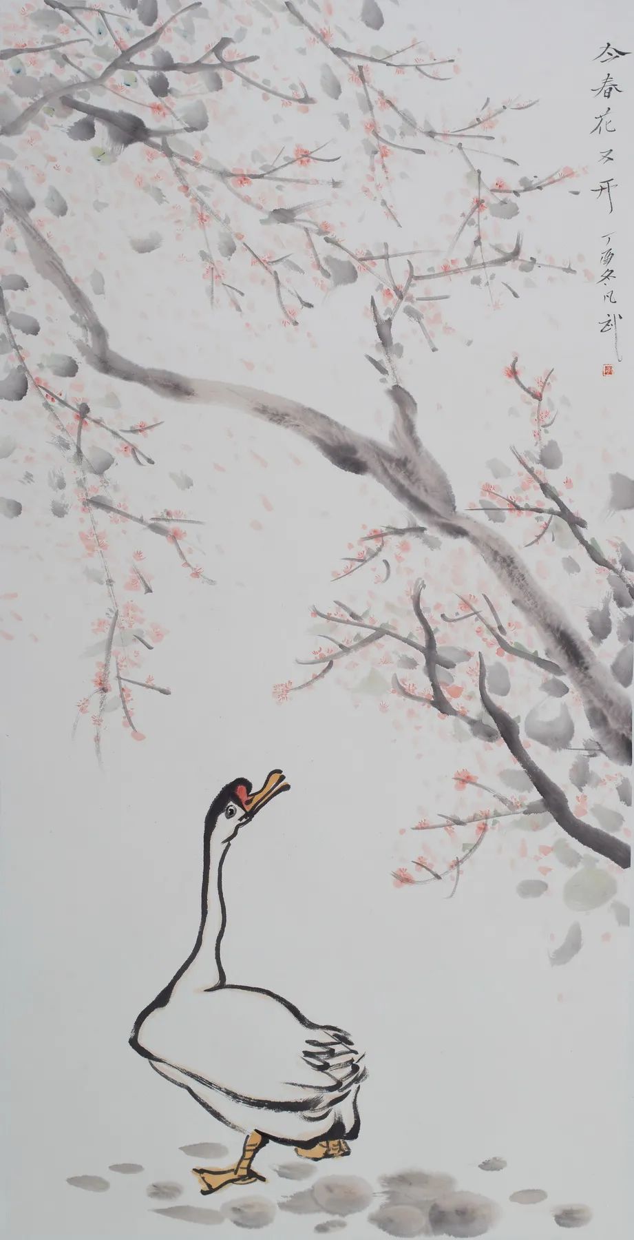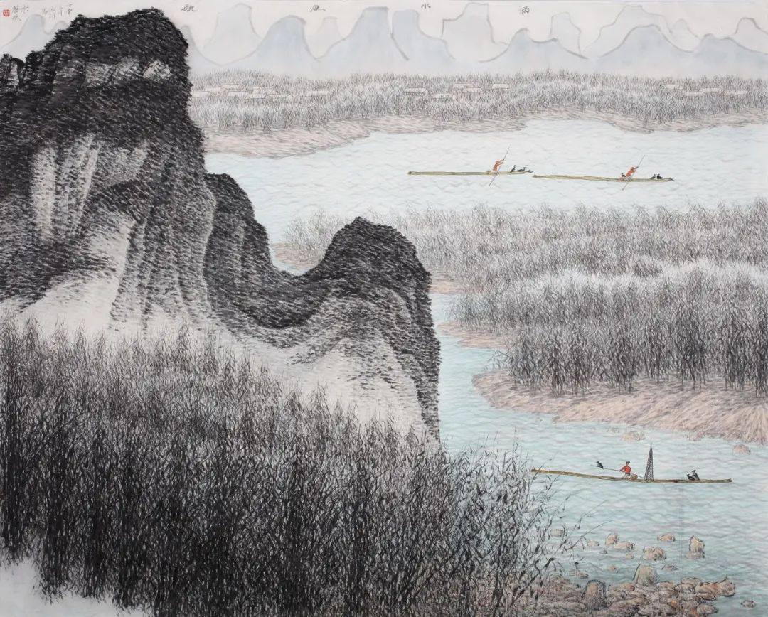 当然,那些原本就从传统文化中汲取营养的人,更会在看到蓝凡武的画时,有所触动,想起幼年的家乡,山清水秀,绿树成荫,河边的苇子丛中,忽然掠过红嘴的翠鸟,或许,这种触动会逐渐地汇集成河流,乃至汪洋恣肆的大海。文化的传承和发展不就是靠着这一点点的触动而来的吗?所以,真实会使蓝凡武的绘画语言变得非常有力!