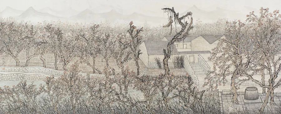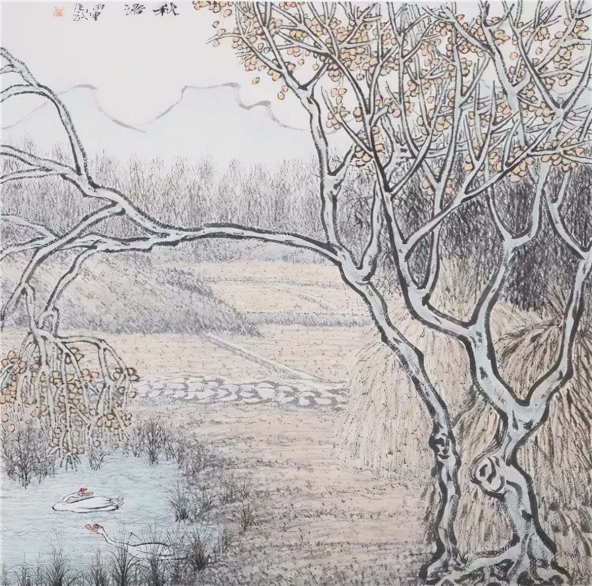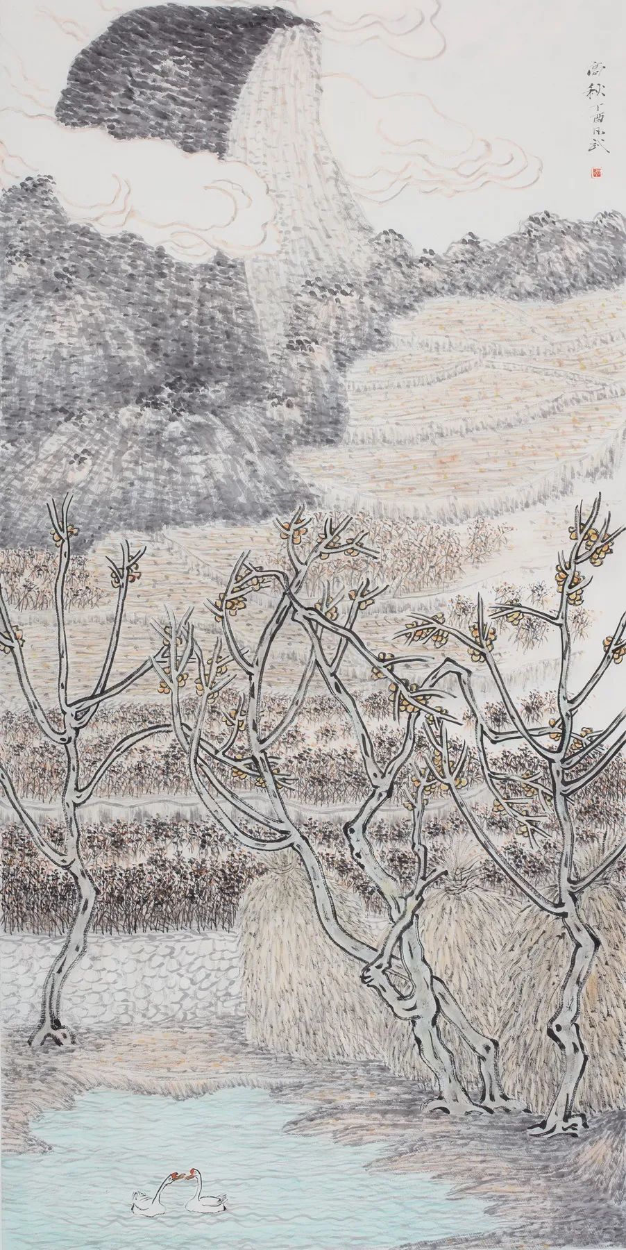 那种浓浓的乡土情怀,真实的生活体验,如同弥漫在山谷中的晨雾,沐浴在黄昏或者清晨阳光中的柿子树,色彩绚丽而简约,场景清晰而自然,感觉模糊而又真实。生活不就是给我们这样的感觉吗?