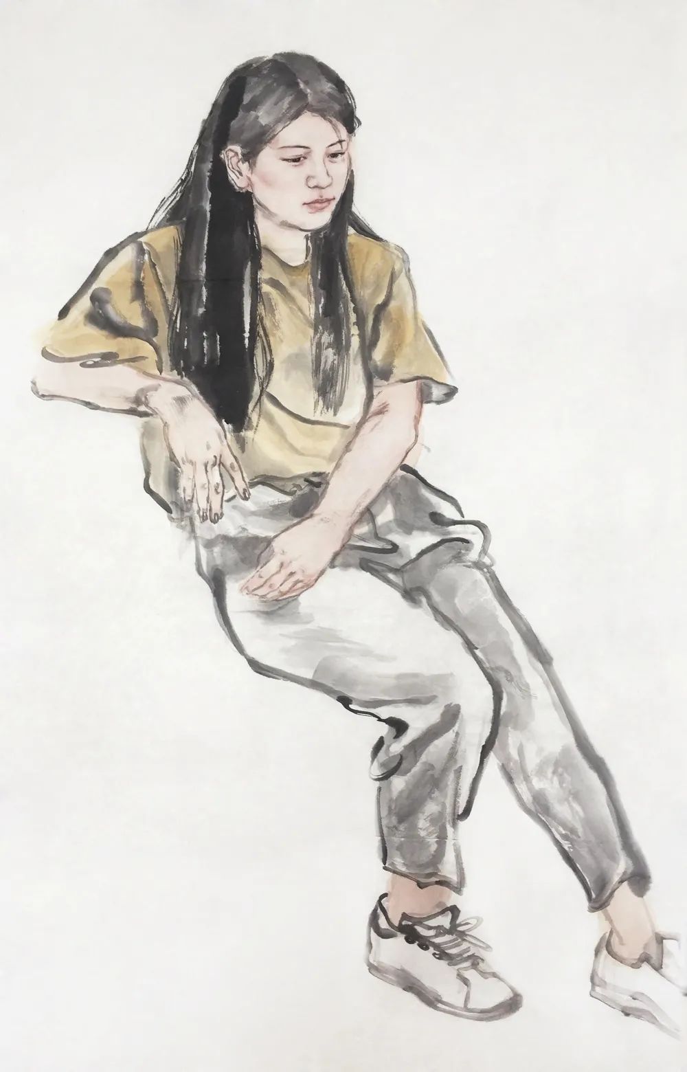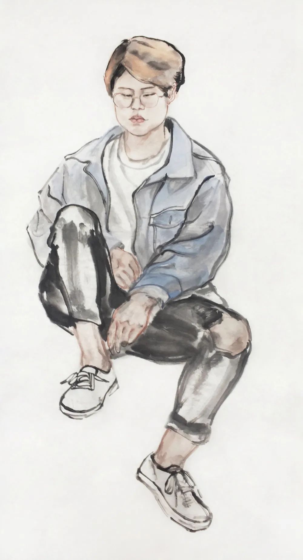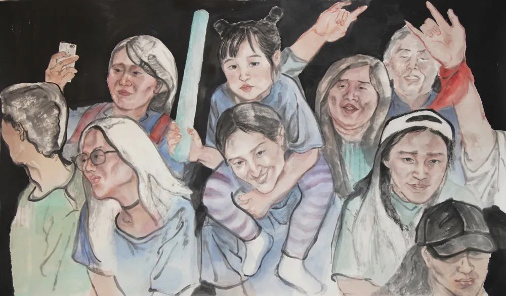 绘画过程难以避免脑洞大开,揣测画中人物的心情心事,被画中人牵着走大抵是多数画者比较忌讳的事情,对我却是不可剥夺的乐趣,只有在这个时刻,我是绝对自由的。敬畏造物主的恩赐,感知个体的冷暖,直至感知群体的情绪,再将这些泼向画纸,便是创作的动机以及全部过程。